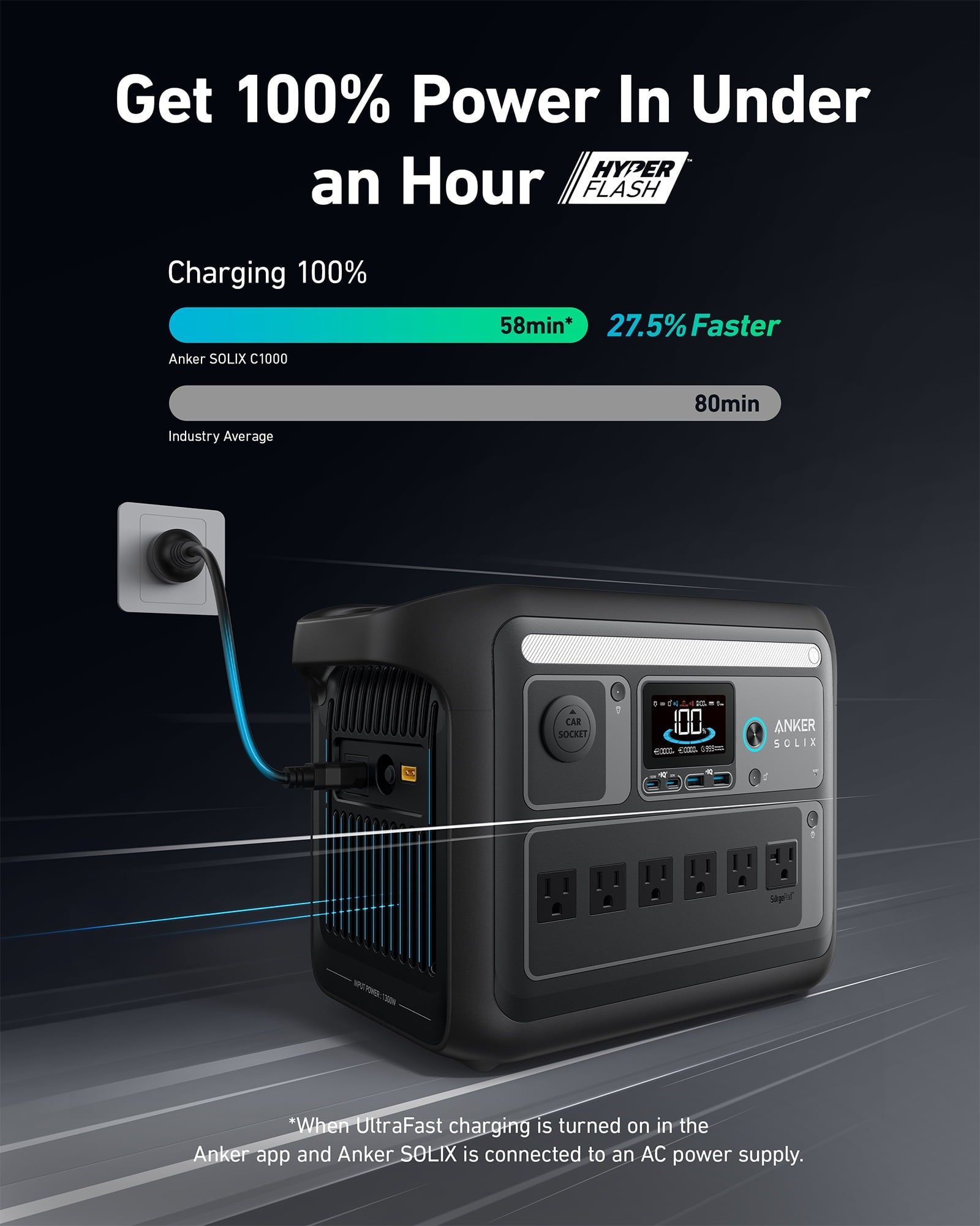 The Anker SOLIX C1000X Portable Power Station charges to 80% in just 43 minutes and fully in under an hour, ideal for home use and power outages. It boasts a 10-year lifespan with 3,000 battery cycles thanks to its LiFePO4 battery. With 2400W output and 11 ports, it powers 99% of appliances, perfect for RVs and camping. It also offers 600W fast solar recharging in 1.8 hours. The Anker app allows for customized charging and real-time power tracking. Compact and adventure-ready, it's 15% smaller than similar units, making it a reliable companion for outdoor activities.